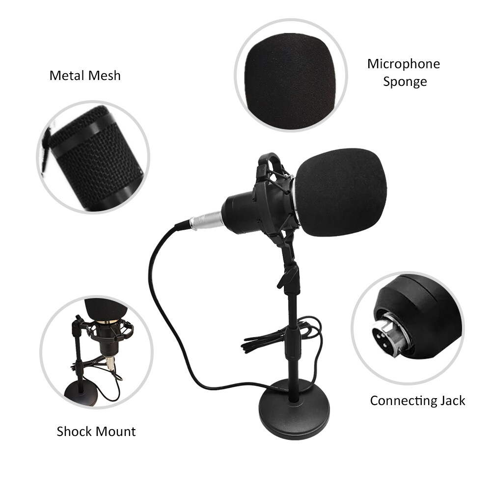 dodocool [Hot]BM-800 Condenser Microphone Portable High Sensitivity Low Noise Mic Kit for Computer Mobile Phone Studio Live- Stream Broadcasting Recording with Round Disk Support