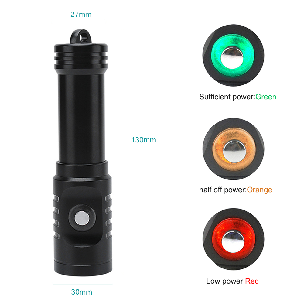 Diving Dive Light TorchBrand Name: AsafeeModel Number: AF01DBulb: XM-L2 LEDEmitting Color: whiteSwitch Mode: High>Low>SOSNet Weight: 110gDimensions: 130mm(length) x 27mm(diameter) x 30mm(head)The latest L2 LED provides greater light intensity and uniformity compared to conventional T5/T6 or U2 LED lamps!LED life: 100,000 hoursMade of high quality anodized aluminum alloy extremely scratch-proof and corrosion resistantCan accommodate up to 80 meters water depth divingIntegrated cool surface on the lamp head ensures low heat in spite of high performanceAdjustable light intensity under water operatedContinuously changing light intensity by slightly moving the switchSealed waterproof designDurable, double-lubricated O-ring seals provides double security to function under water3-optically tuned mirror reflector for optimal light outputPowered by 1 x 3.7V 18650 BatteryBest suited for: Diving, camping, hiking, trekking, hunting, fishing ...
