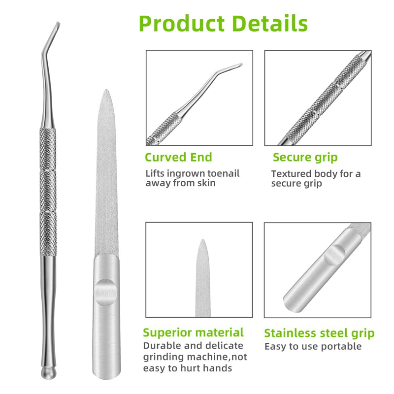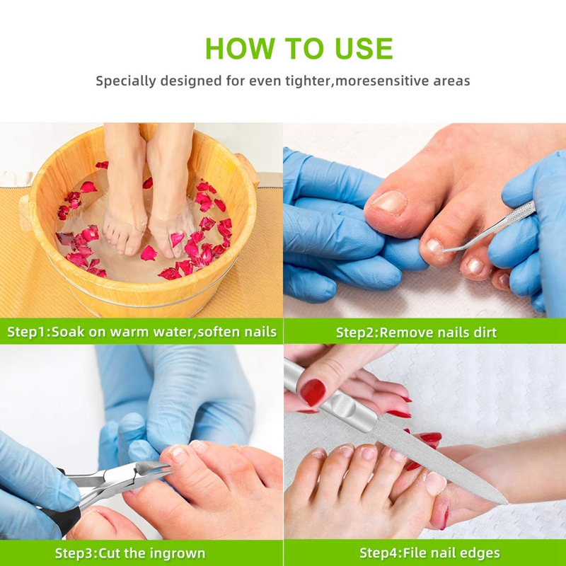 [SELECTED KIT] Professional ingrown toe nail clippers tools kit(4-in-1), superior stainless steel refined. It's hard, sharp, antirust and durable, so these nail tools are also the first choice for dealing with thick and hard nails.