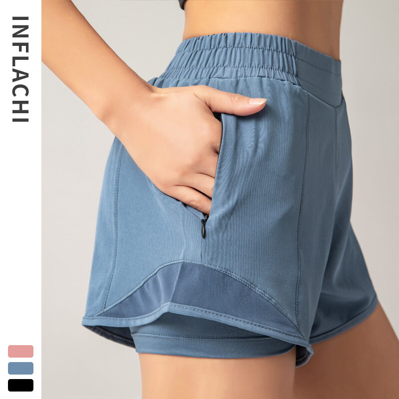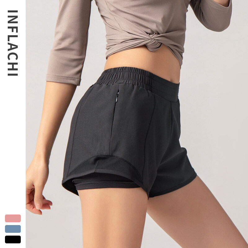New Female Anti Exposure Fitness Shorts Running Activewear For Women Yoga Workout Shorts With Pockets Athletic Shorts Sports Wear For Women Gym High Waisted