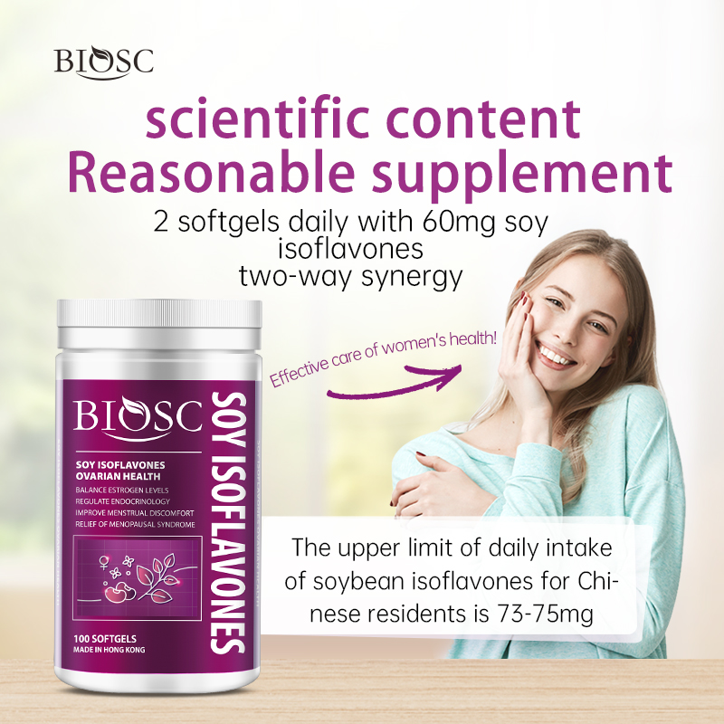 BIOSC Non-Gmo Soy Lsoflavones 100 Soft-gels And Natural Vitamin E,Greape Seed Extract Menopause Balance,Natural Estrogen Supplement for Women,Support Healthy Ovarian Function