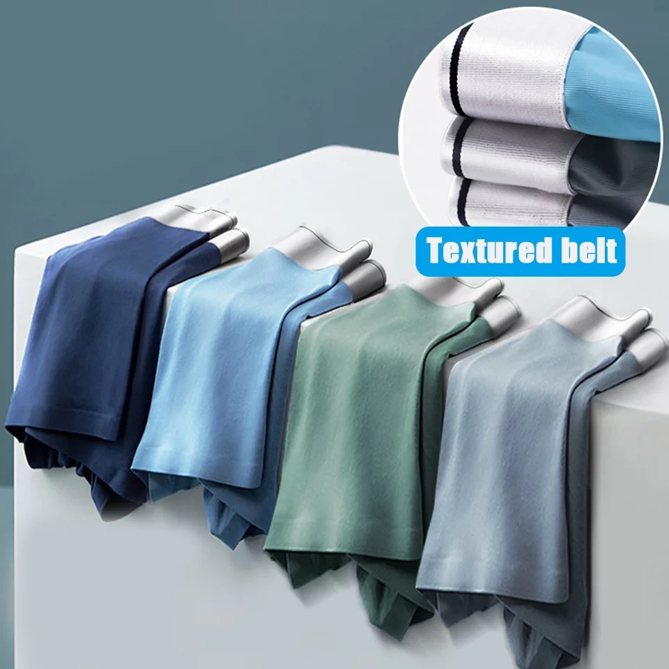 (3 Pcs) Men Underwear Men's Basic Ice Silk seamless Boxer Shorts Comfortable thin breathable Plus Size Men's Panties Underpants
