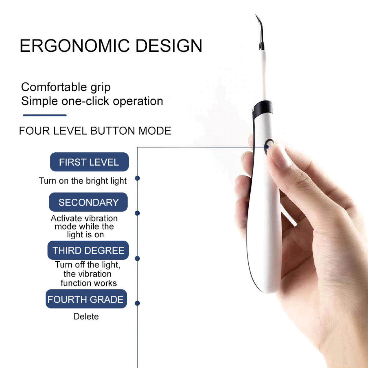 【High-Frequency Vibration】12000 rpm high-frequent sonic vibration along with professional cleaning head effectively helps eliminate the dental calculus, plaque and stains, achieving the thorough cleaning of teeth.