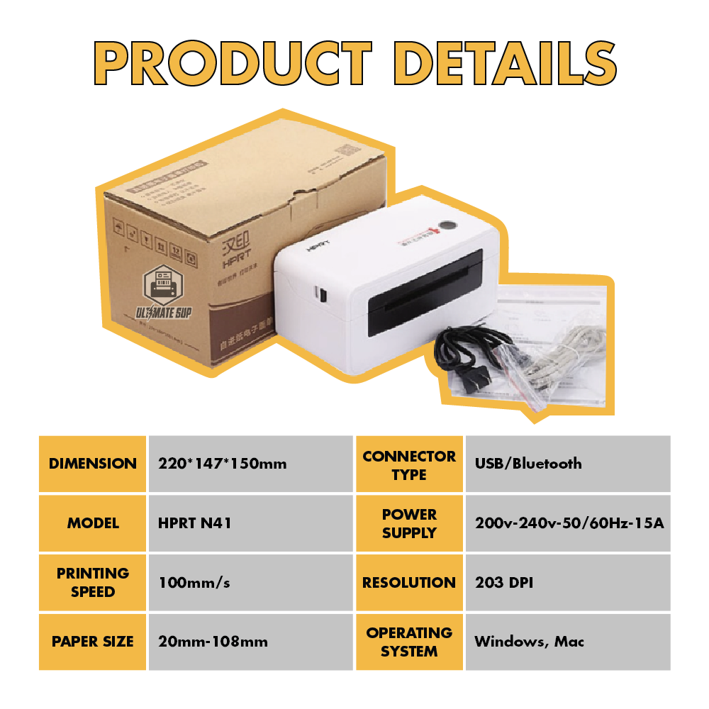 COMBO Thermal Printer HPRT N41 Label / Barcode Printer with Bluetooth & USB + 1000pcs A6 Paper