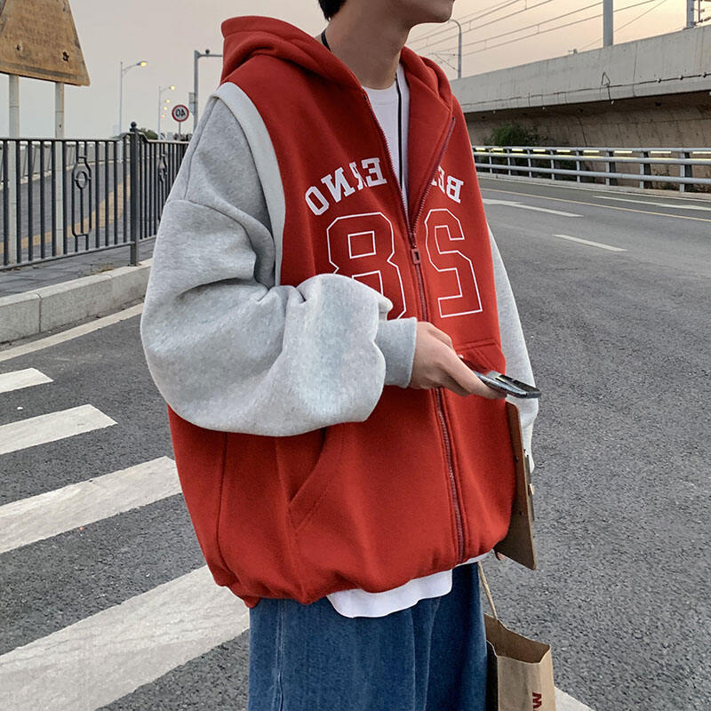 Spring and Autumn Ins Super Popular Trendy Versatile Fake Two Pieces Cardigan Sweater Men's Korean-Style Student Stitching Hooded Sportswear