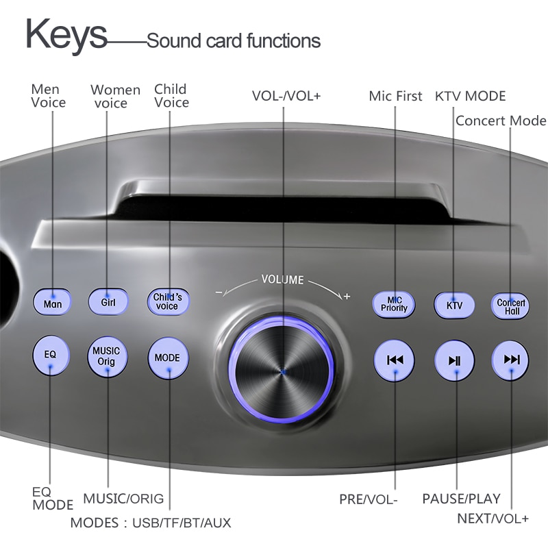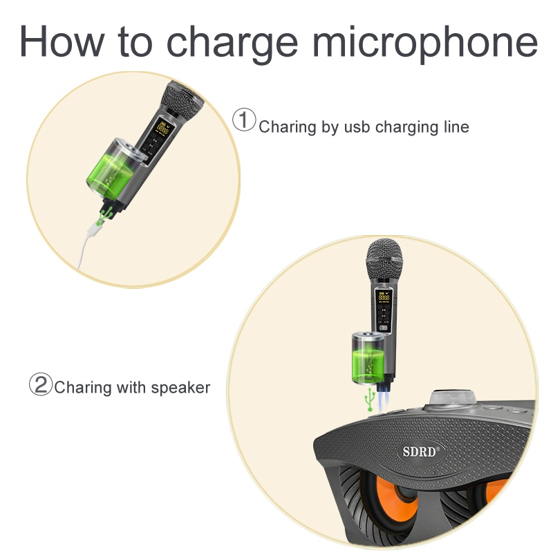 -Two wireless microphones Support even hello tone one button elimination Play micro SD card,