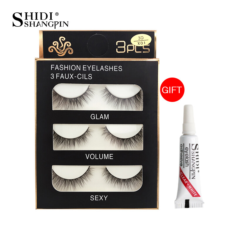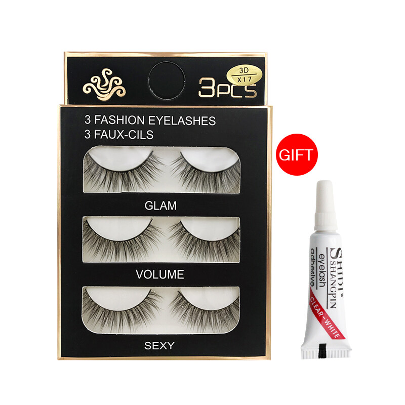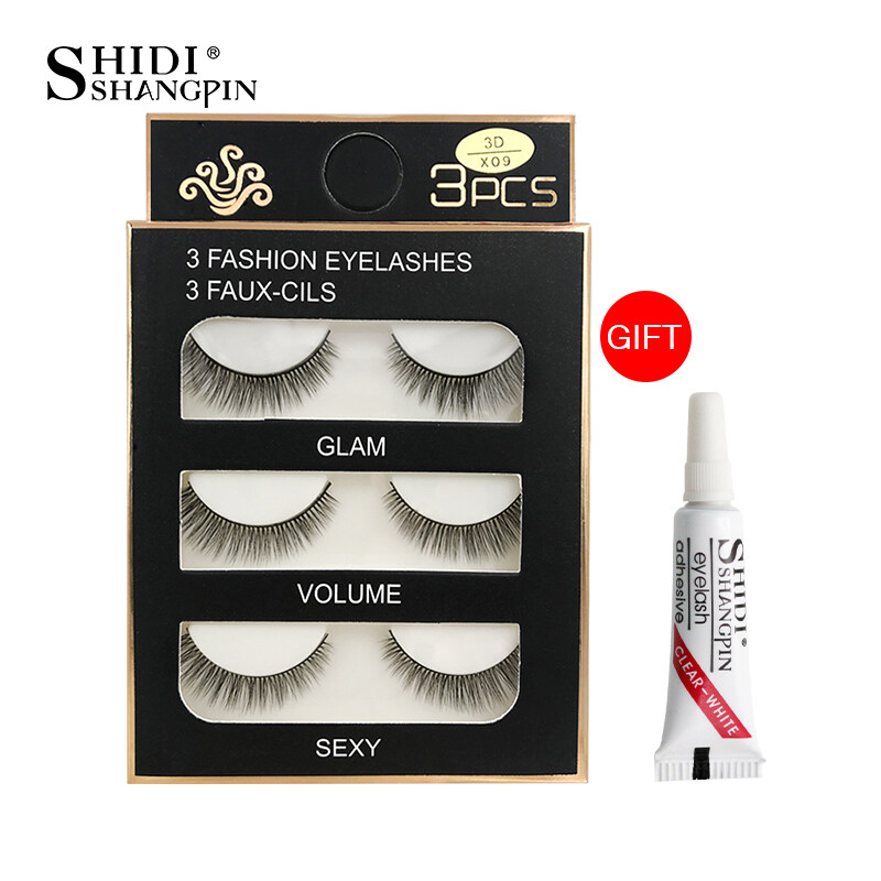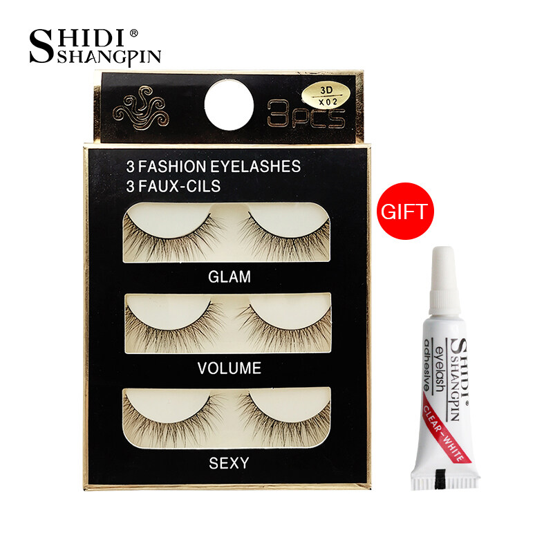 SHIDISHAGNPIN Fake Eyelash with Glue 3 Pairs of Popular False Eyelashes Natural Soft Lashes