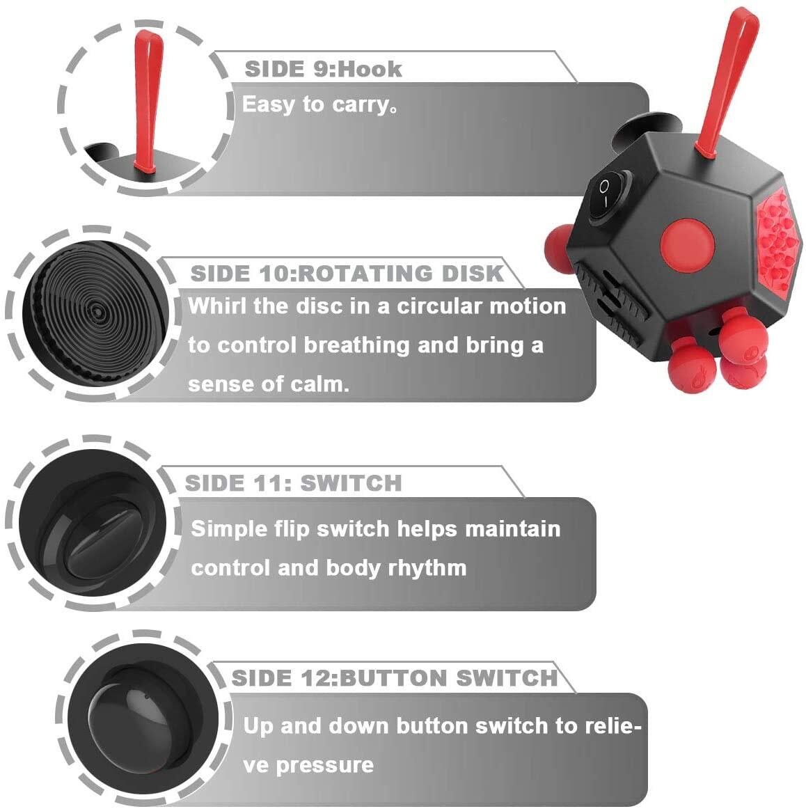 As the name suggests, the Fidget Dodecagon has 12 sides. Each side has unique fidgeting options for when you are feeling anxious or restless. Gears, Buttons, Joystick, Switch, Disk, Silicon Ball, etc. allows one to focus better.