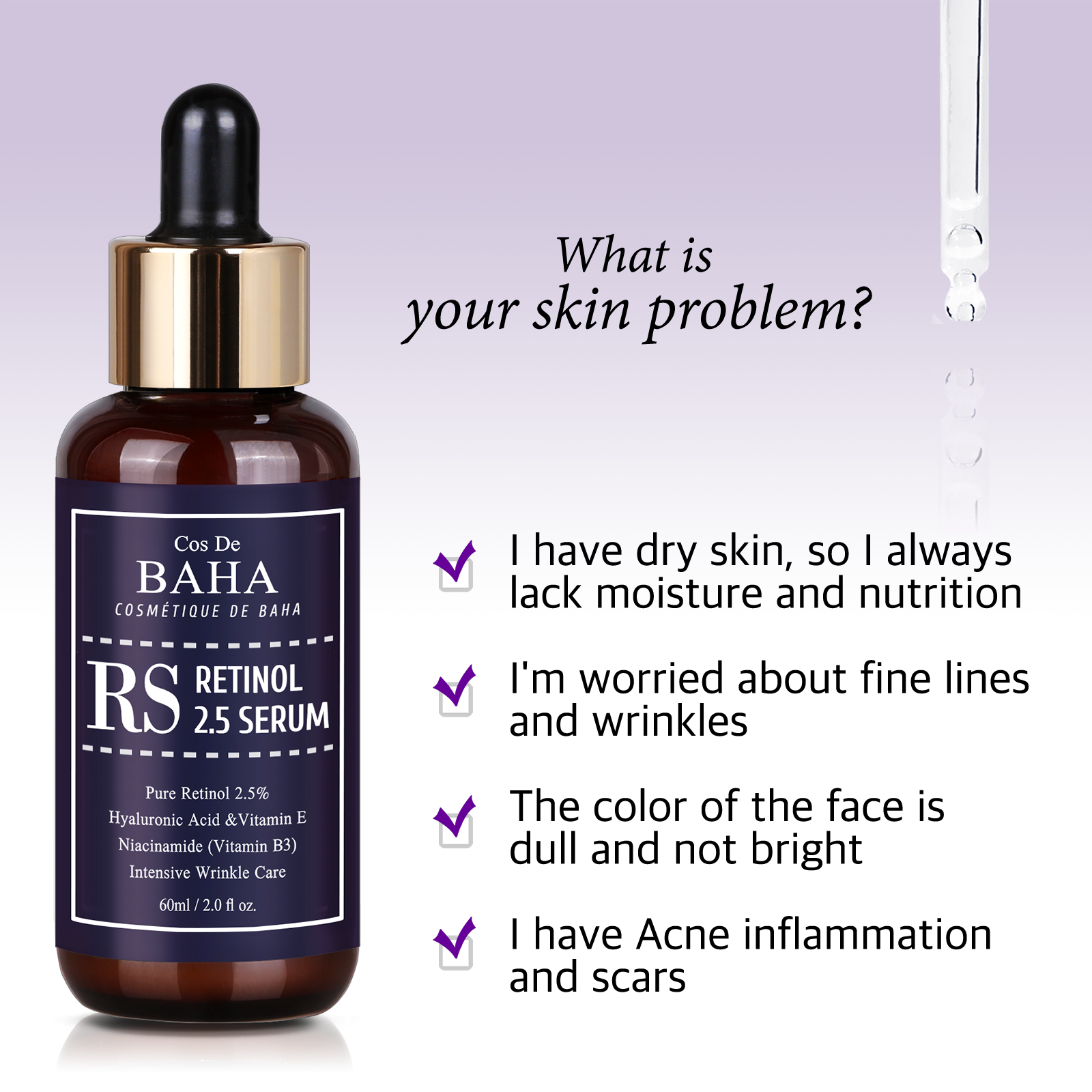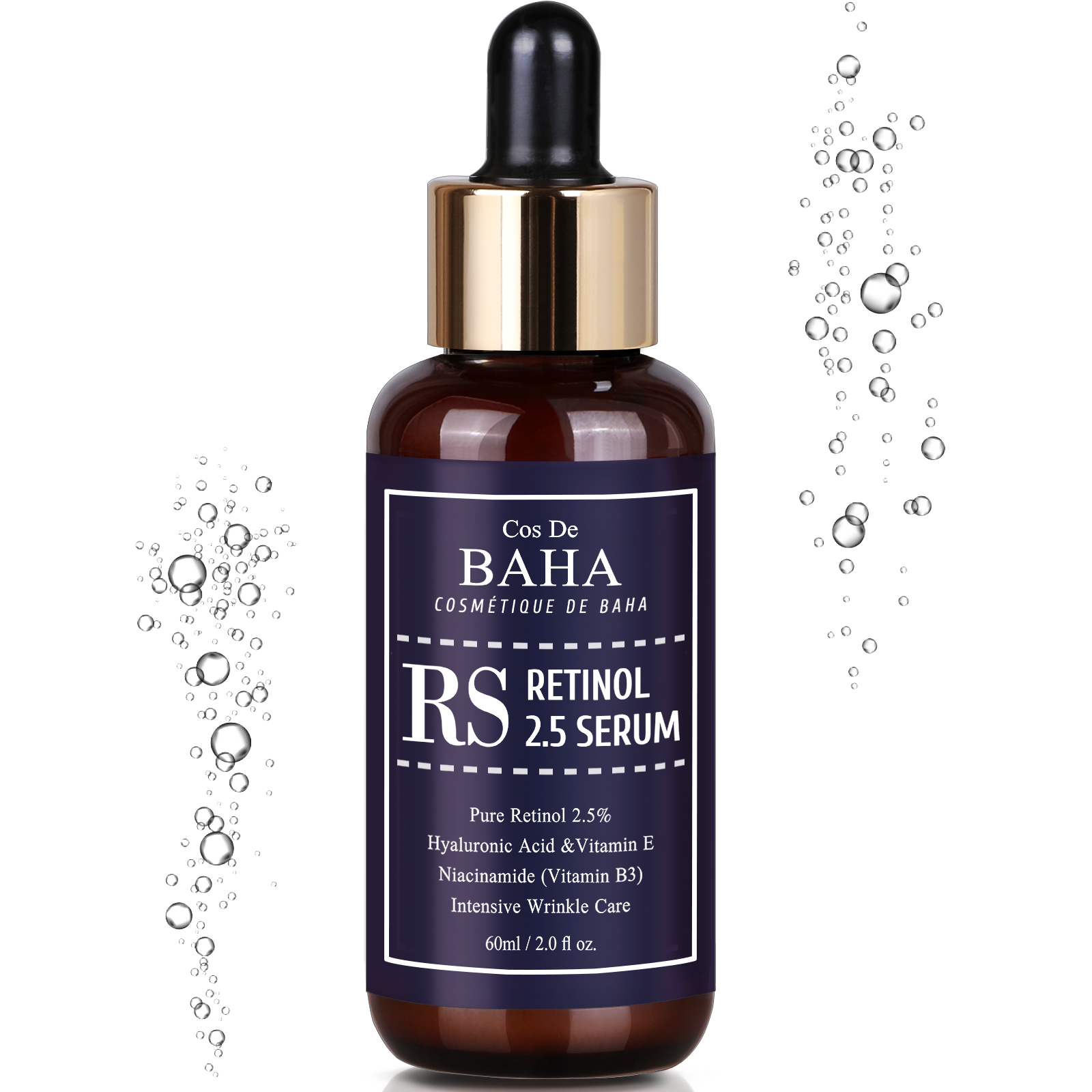 Cos De BAHA-Retinol 2.5% Facial Serum with Vitamin E - Diminishes Acne-prone + Age Spot Remover + Retinol Serum 2.5 High Strength for Face without a Prescription, 2oz (60ml)