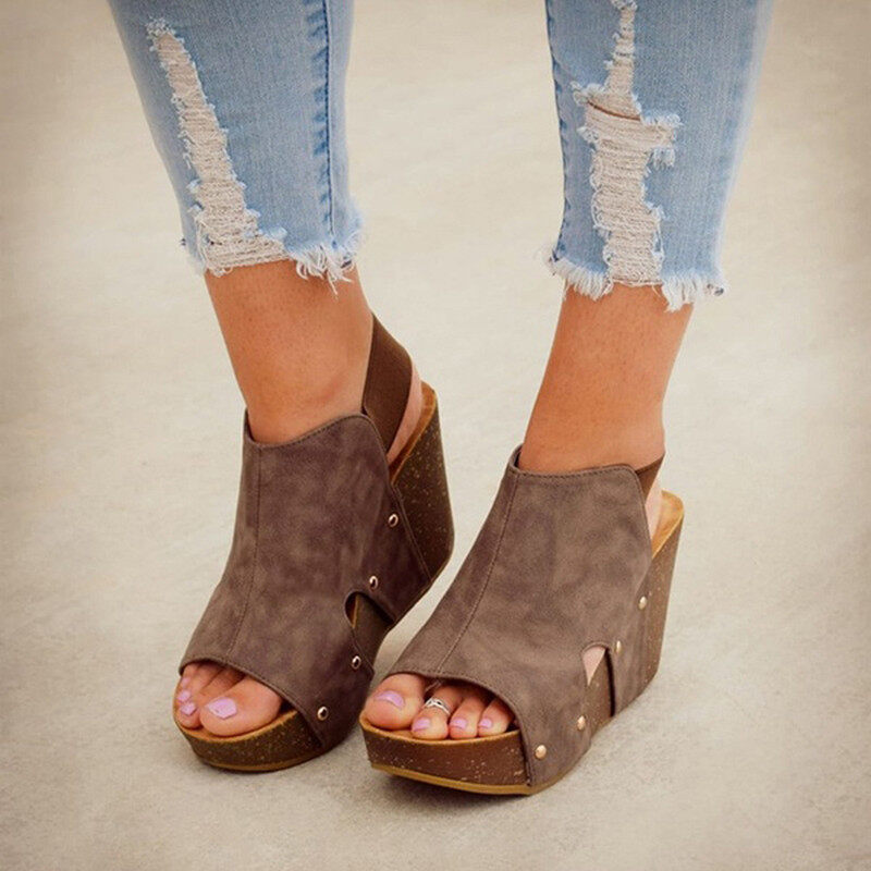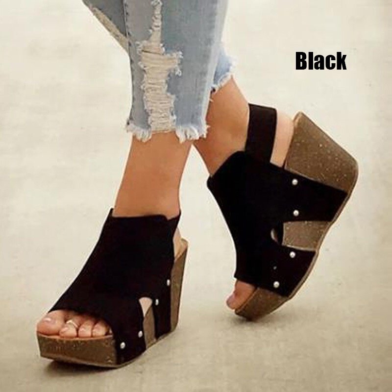Women Summer Wedge Fish Mouth Sandals Casual Platform Shoes Fashion Female Heels Slippers Plus Size