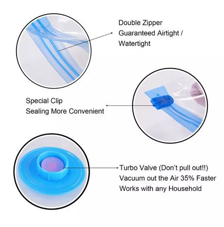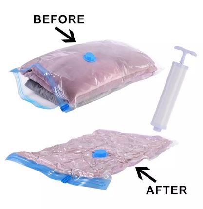 The Storage vacuum seal bags help to save up to 80% spaces and create more storage space in the closet or under the bed. The bags not only compress bulky items for more compact storage, but they also create an airtight seal for protection against dirt, moisture, mildew, bugs, and odors.