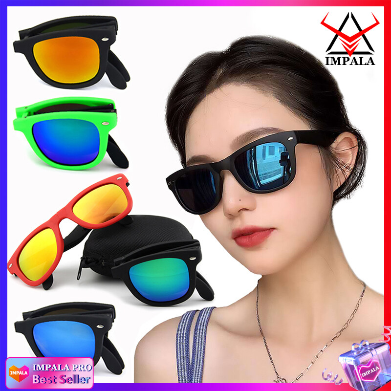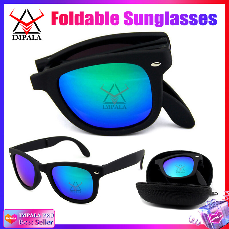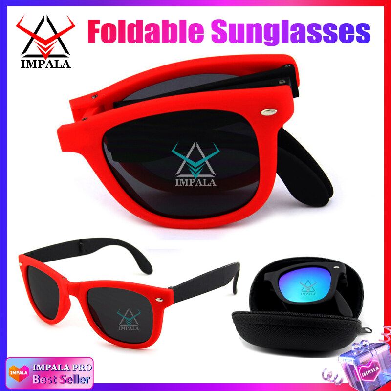 IMPALA QT116X Fashion Foldable Sunglasses for Men and Women Anti Glare Outdoor Sports Sun glasses Portable Glasses UV Protection Lens with Mini Eyewear Case
