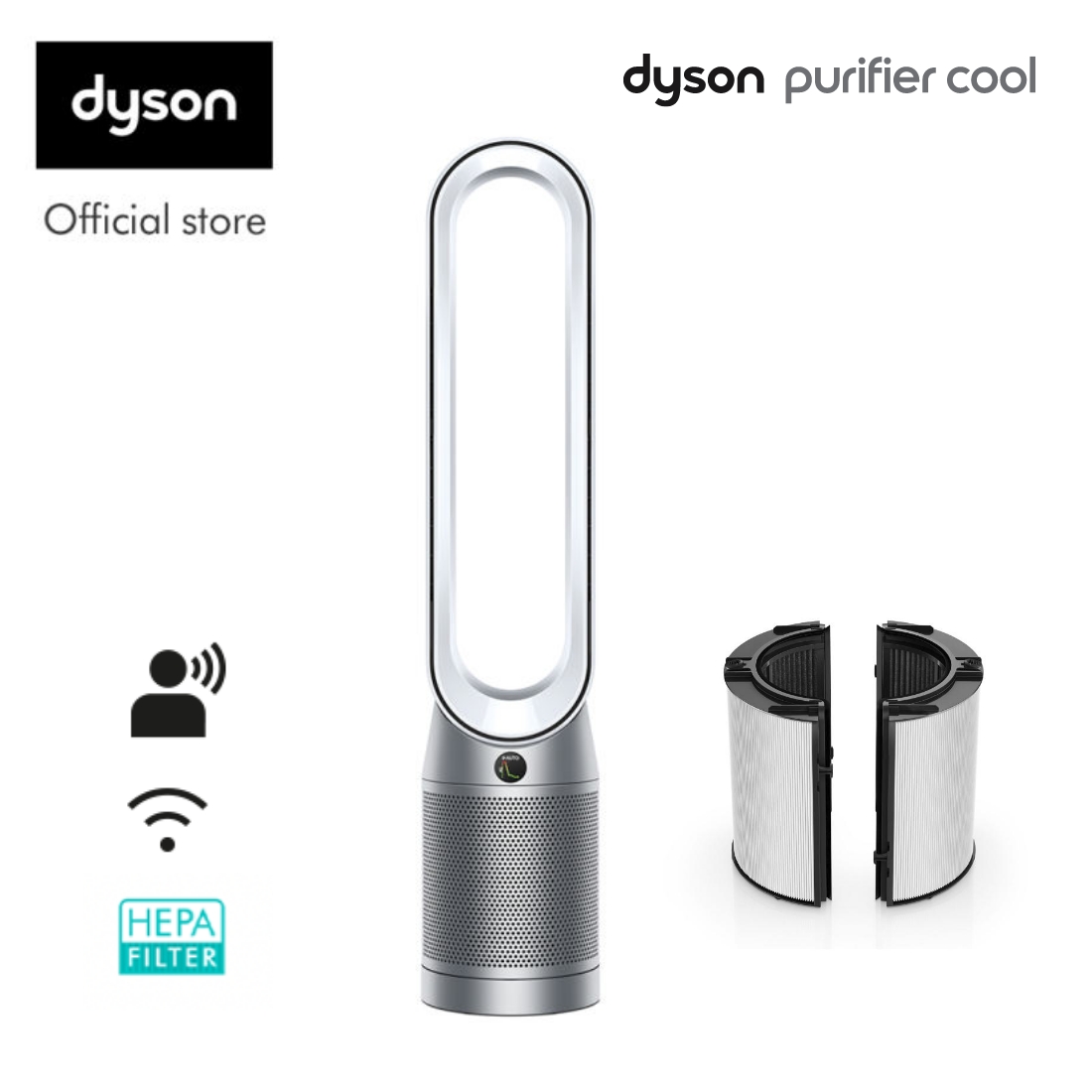 Dyson Purifier Cool ™ Air Purifier Fan TP07 (White/Silver) with 360° Glass HEPA+Carbon Air Purifier Filter