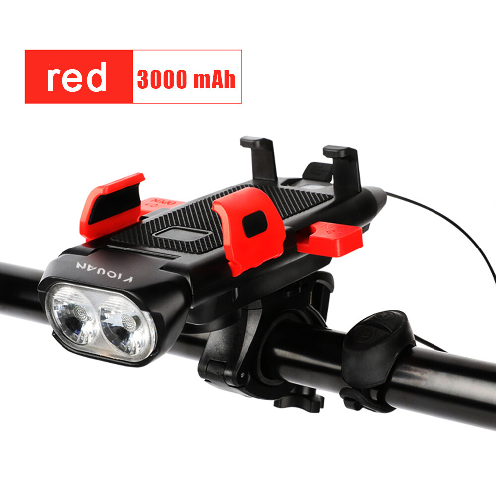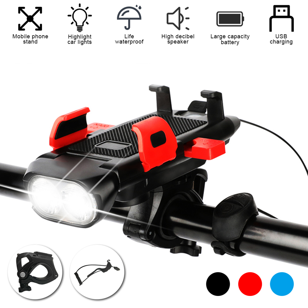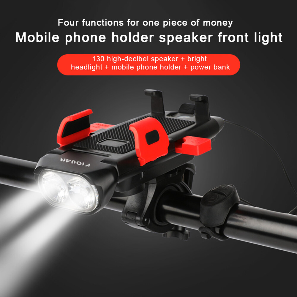 ?【In stock】Virwir riginal red/blue/black USB bicycle front light 4 in 1 bicycle light 3 lighting modes Front Light of Mobile Phone Stand Speaker mobile phone holder bicycle horn mobile power flashligh