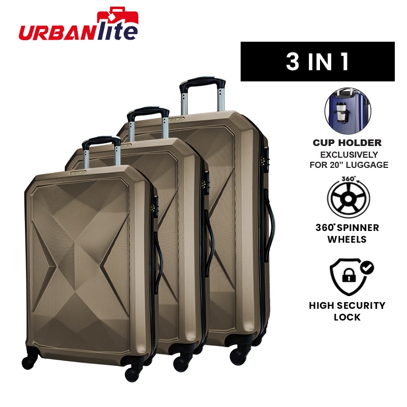 [SG Ready Stock] URBANLite RUBIK 3 In 1 BUNDLE SET ABS Hard Case 4-Wheel Spinner Luggage ULH9919 by Universal Traveller