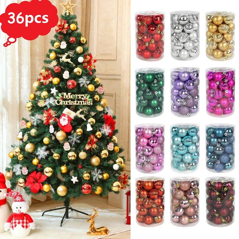 【lightingeverthing】36pcs/set Christmas Xmas Tree Balls Bauble Hanging Home Party Ornament 2021 Christmas Decoration 4cm