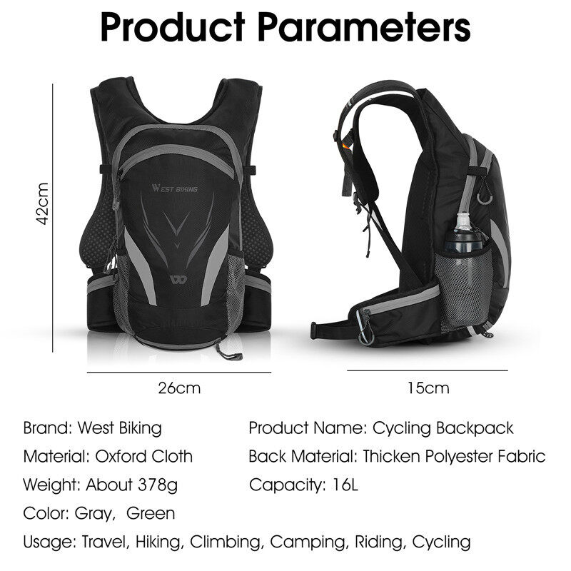 WEST BIKING Bike Backpack 16L Ultralight Bike Waterproof Bag With Survival Whistle Cycling Knapsack Mountain Bike Backpack Leisure Light Travel Bag Riding Equipment For Men