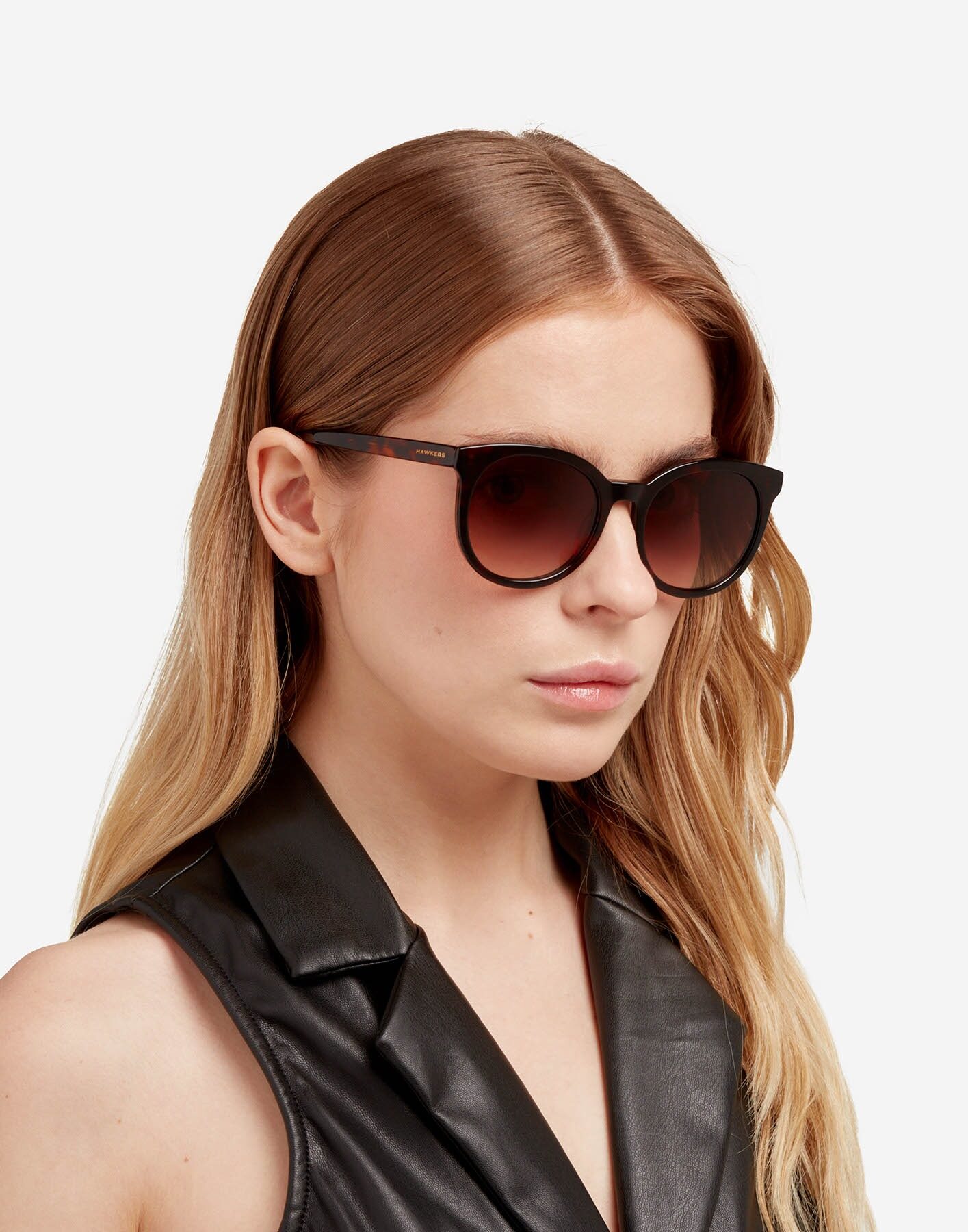 The gradient brown lenses of this model complement the dark tortoiseshell print of the frame. Inspired by classic 1960s panto designs, the end pieces are placed marginally higher for a pseudo cat eye effect. No Gender Model Lenses of Eastman ??TR18, one of the World leaders in copolyester technology. Respects the environment and gives a unique balance between clarity and resistance Category 3 lenses with UV400 protection High-quality cellulose acetate frame for maximum resistance and durability Acetate nose pads for a more comfortable grip 5 barrel hinge for improved grip and durability Wider design of the earpiece for better ergonomics and comfort Stainless steel pyramidic trim to soften and structure the join between temple and earpiece for a more elegant finish Size: Front 13,8 cm; Height 5,19 cm; Lens diameter 5,2 cm; Bridge 1,9 cm; Temples 14 cm Includes: Microfiber cover, box and set decorative stickers