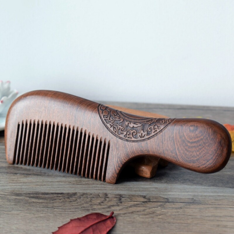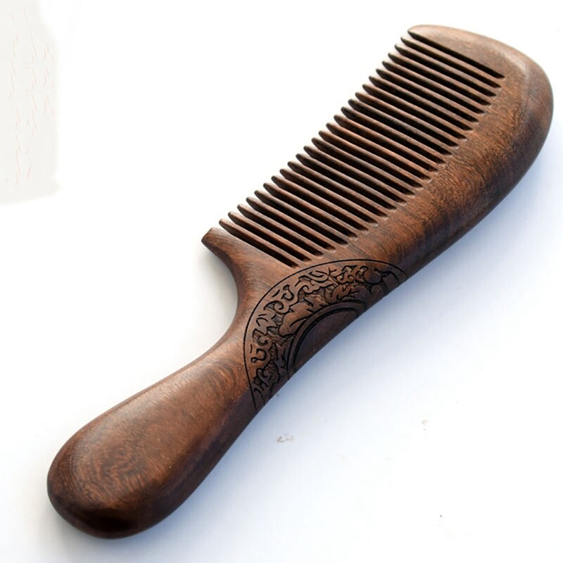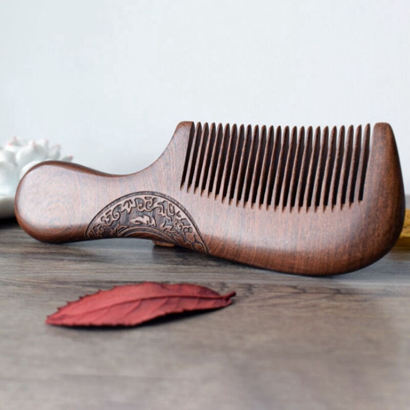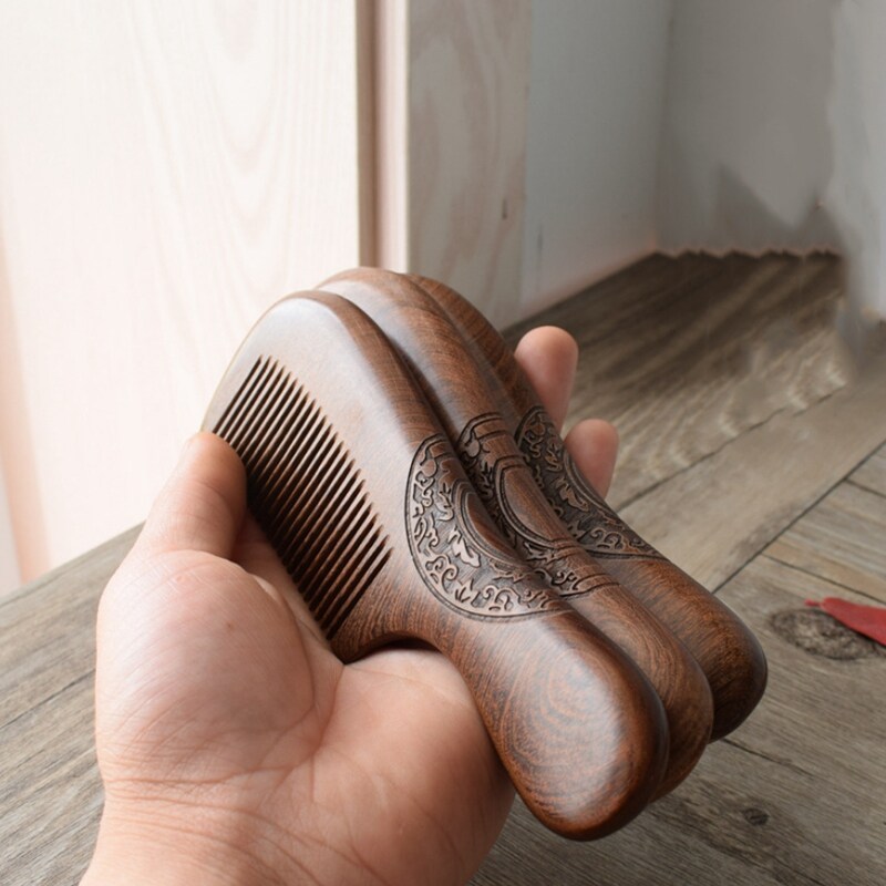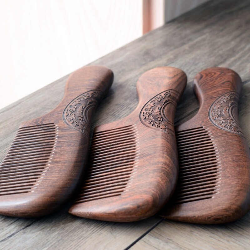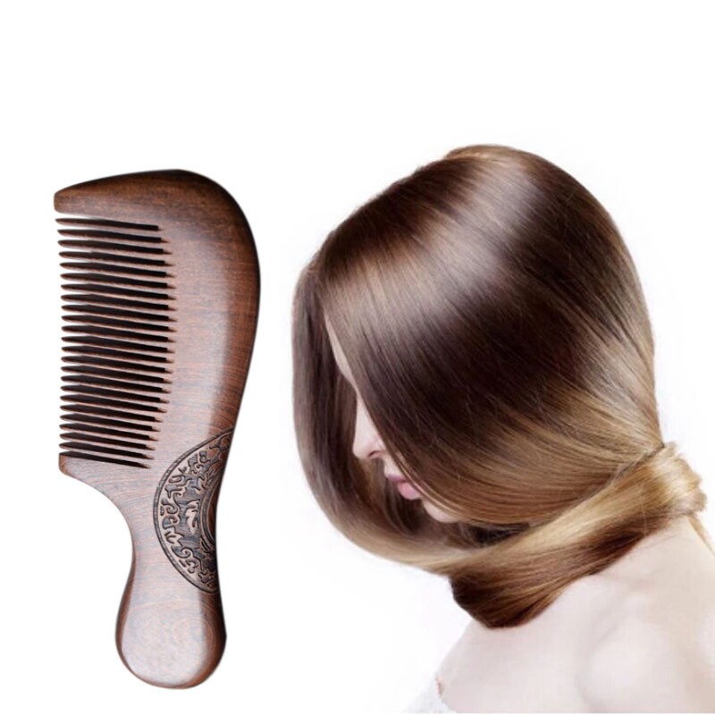 Unisex Sandalwood Comb Women Men Home Travel Wood Anti-Static Fine-Tooth Comb Wooden Handles Hair Comb