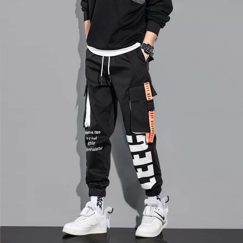 Spring and Autumn Letter Printed Overalls Men's Fashion Brand Ankle-tied Loose Hip Hop Casual Pants Fried Street Ins Super Hot Pants