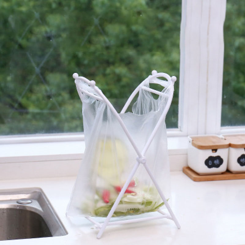 Product Name: Folding Garbage Rack Weight: about 0.44g Color: blue, green, white, pink Size: about 31.5*17cm/12.4*6.69'' Package includes: 1Pc x trash bag holder