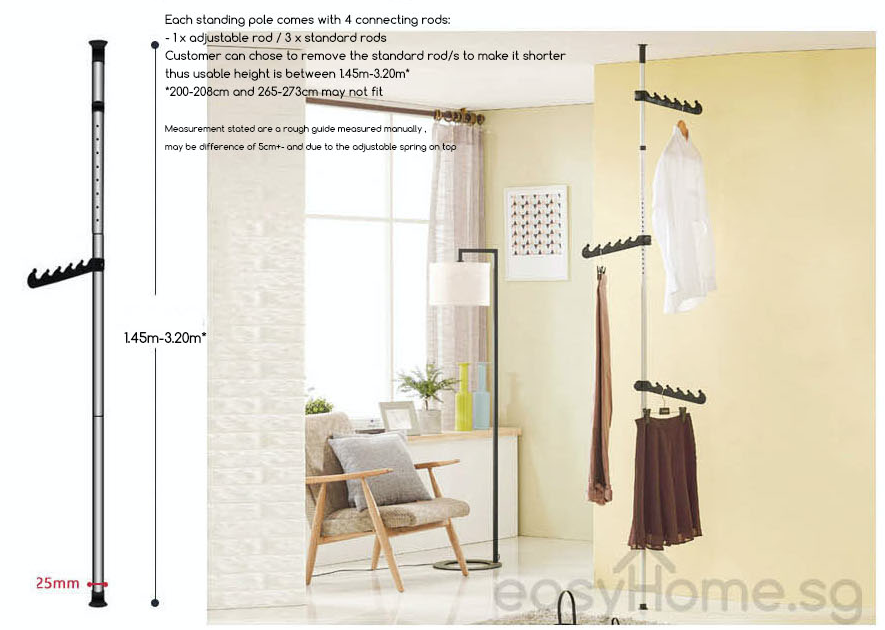 2501 Korean Standing Pole Clothes Rack- Adjustable Hanger Bar/ Drying Shelf