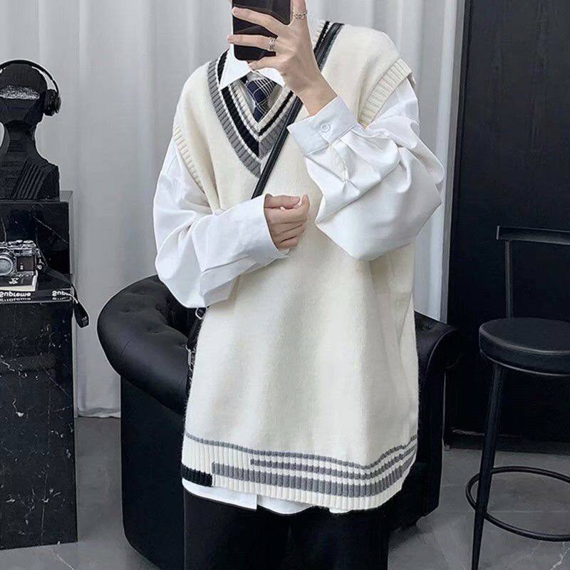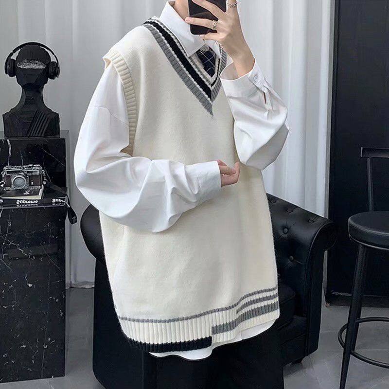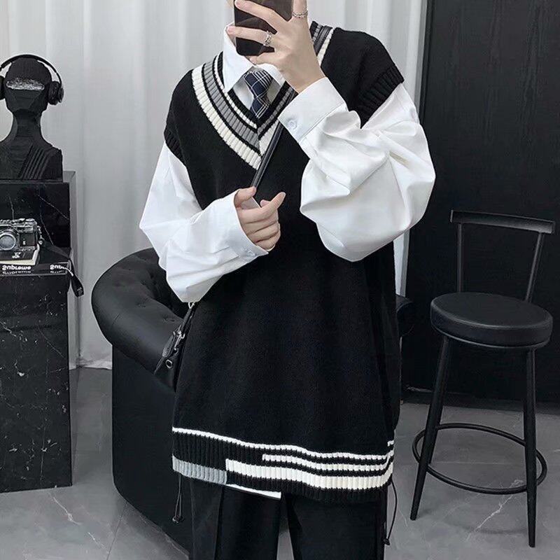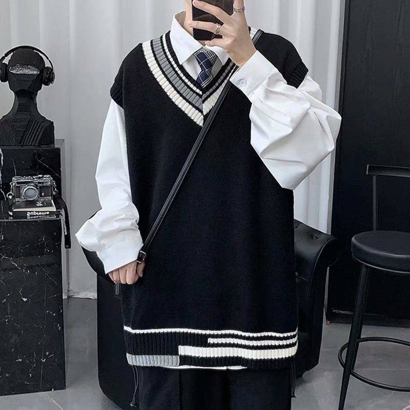 Men's autumn sleeveless knitted sleeveless, personalized color-blocking sweater vest, college style couple literary loose sweater, sleeveless sweater vest for men, wool vest vest, men's autumn and win