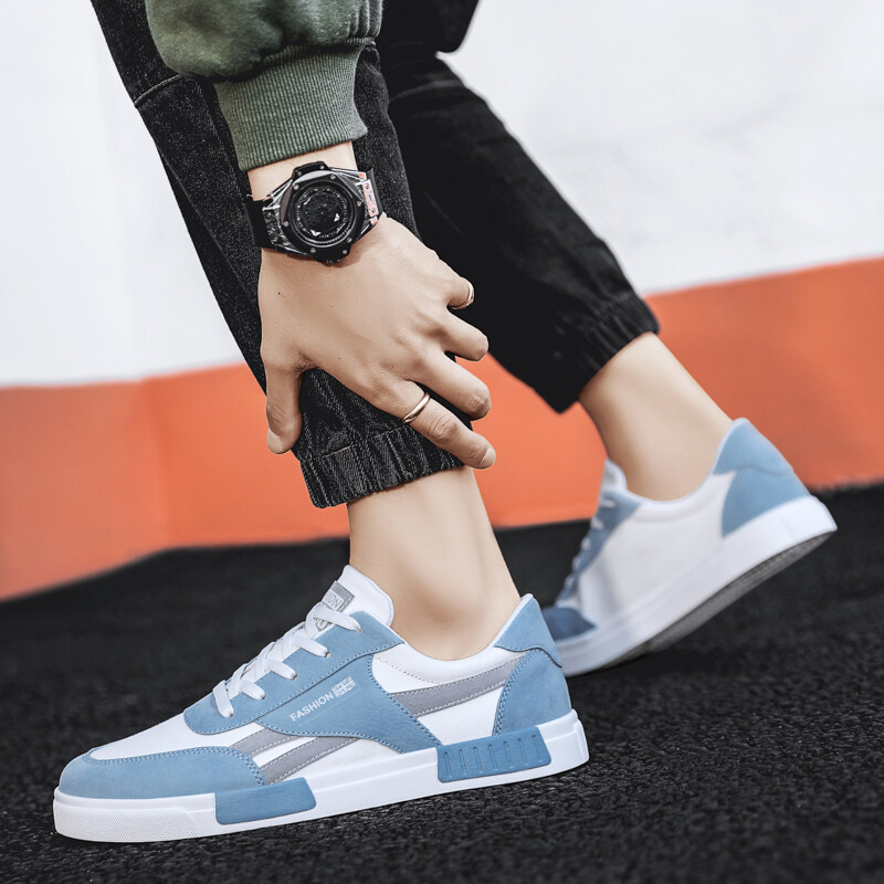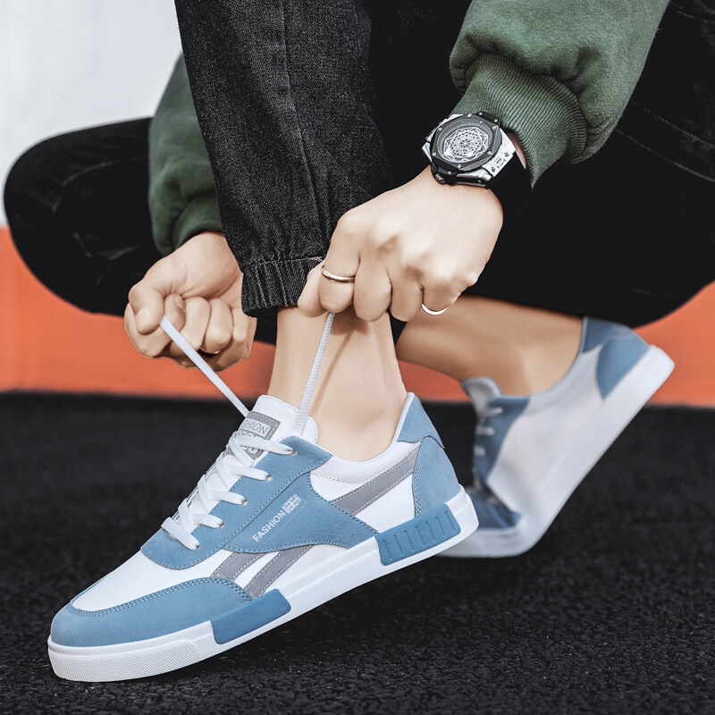 【READY STOCK】Men's high top sports shoes, outdoor casual board shoes, thick soled lightweight sports shoes, round toe lace up running shoes.