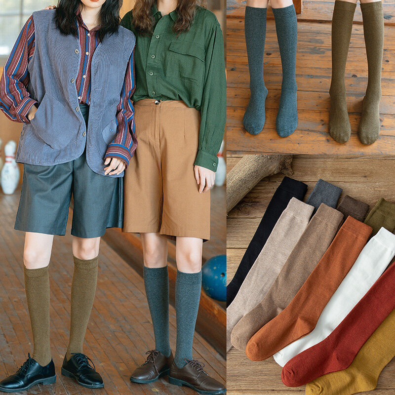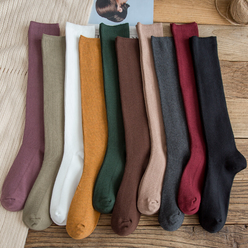 Women Cotton Knee High Socks Black White Solid Color Fashion Casual Winter Thick Socks Female Girl Party Dancing Sexy Long Socks