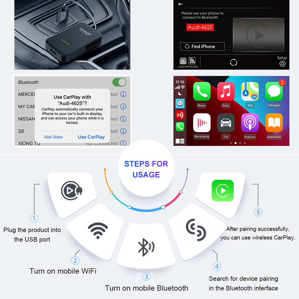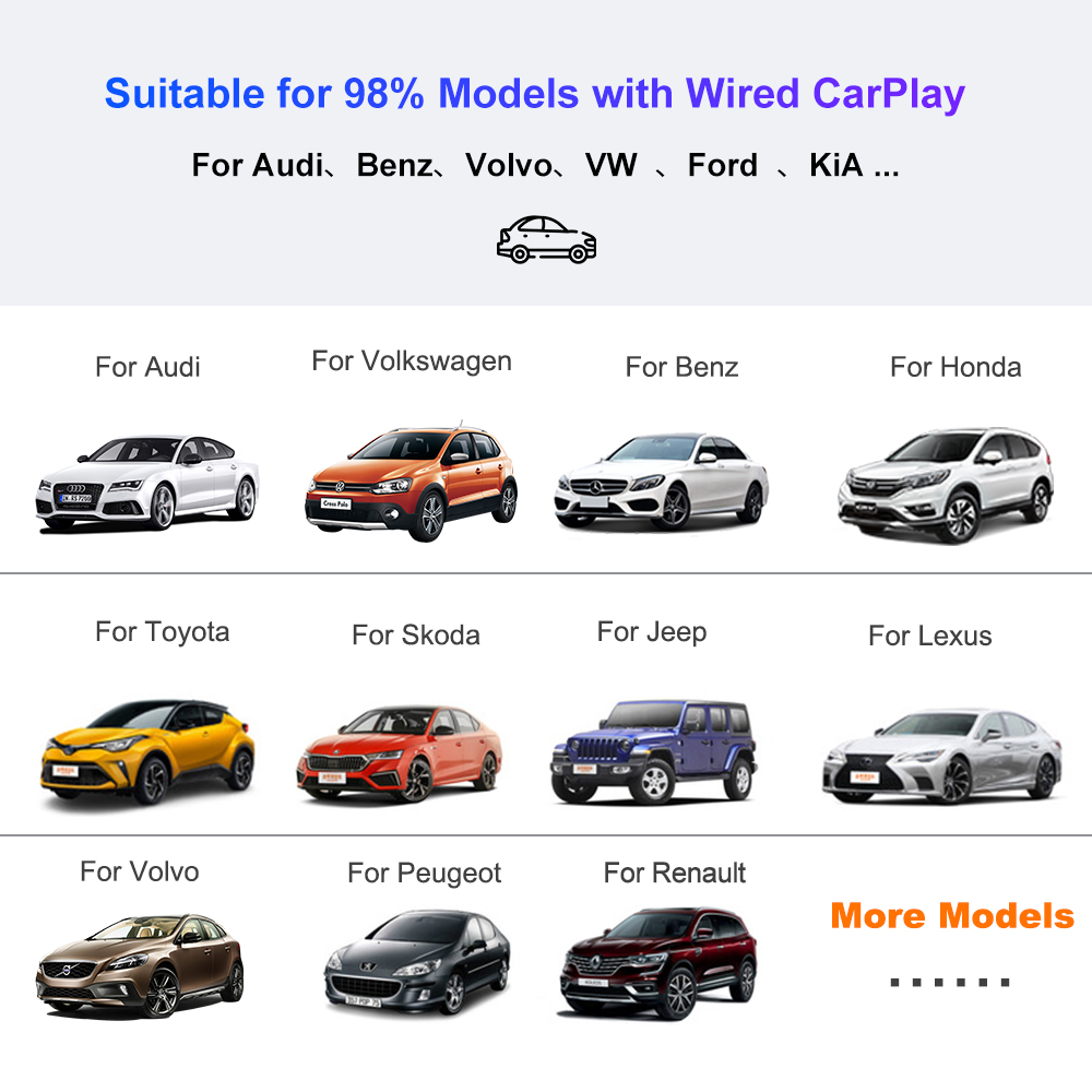 - Plug and Play USB Wireless CarPlay Adapter, without any installation.