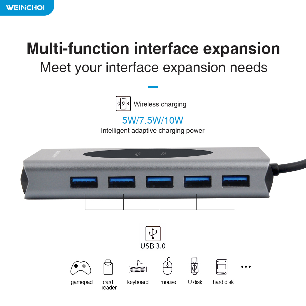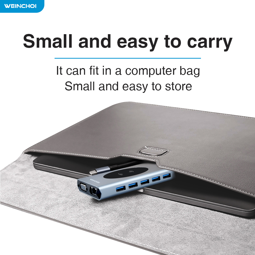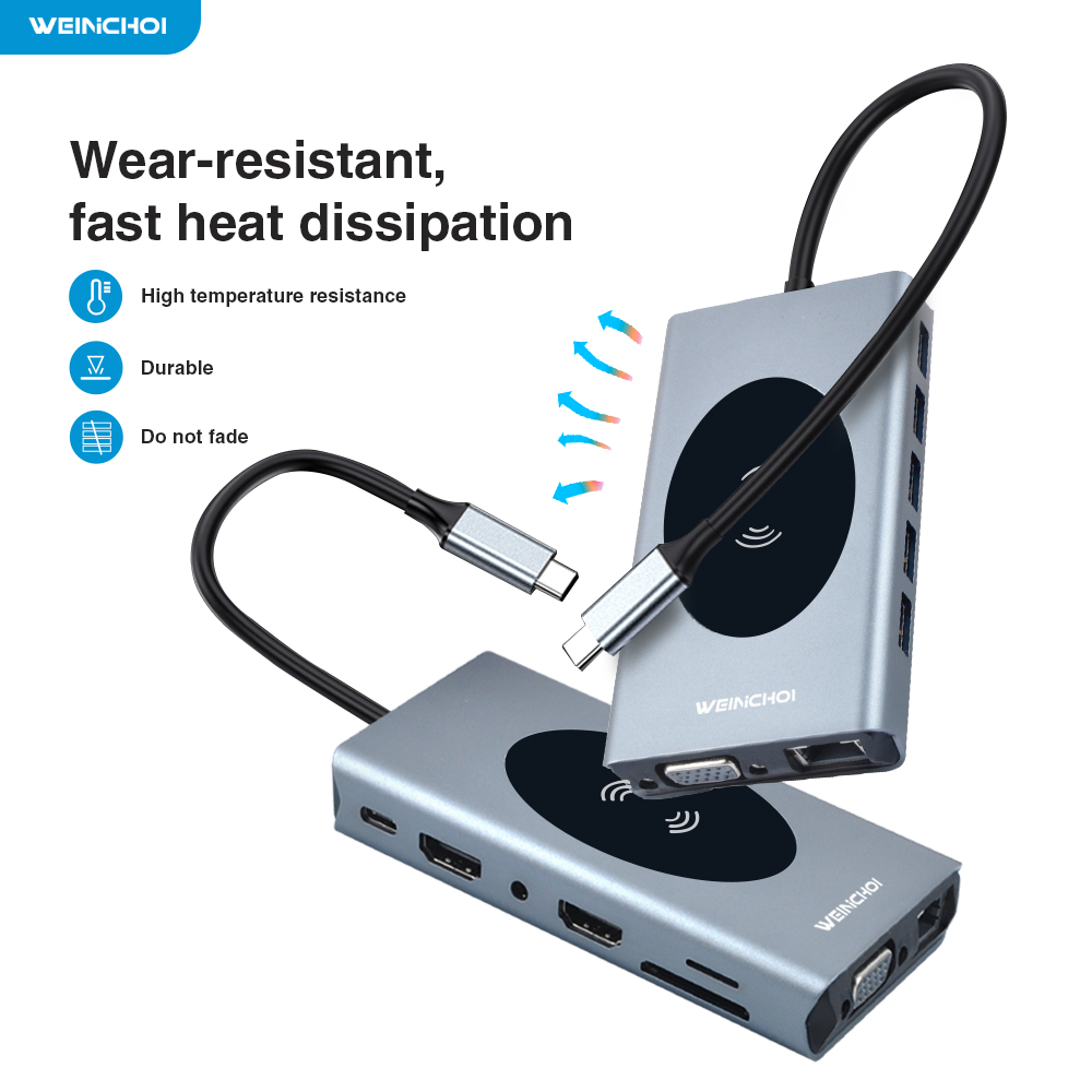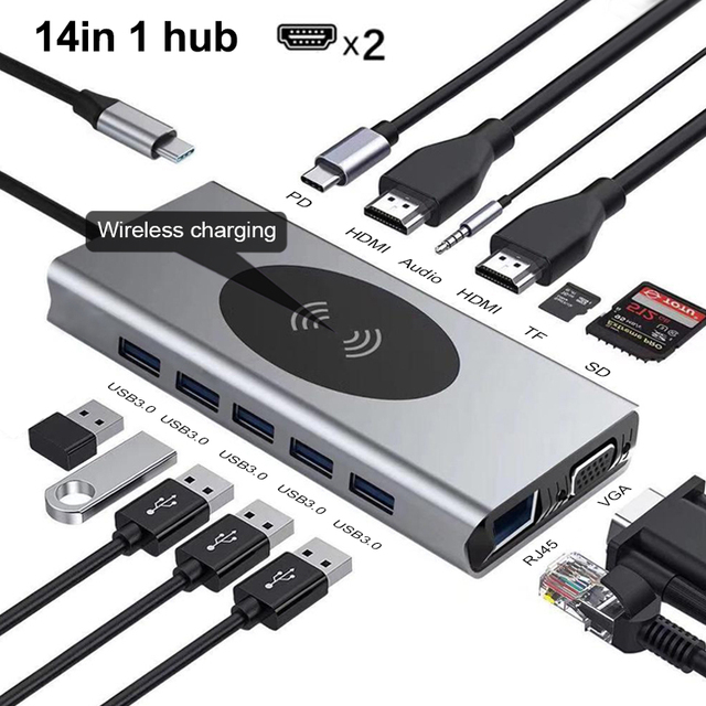 Type C USB Hub Docking Station With HDMI-compatible Wireless Charge SD Card Reader USB-C Type-C Plitter Hub For Laptop