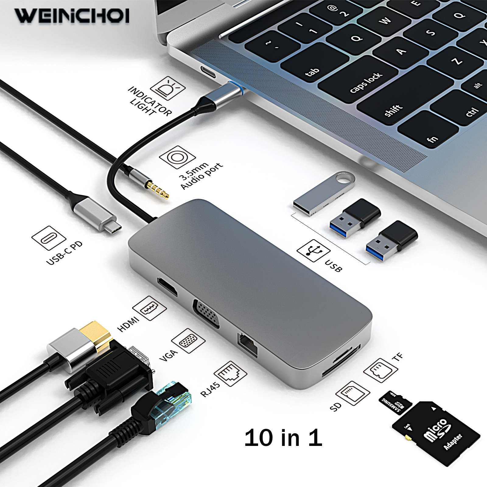 WEINICHOI 14 in 1 Docking Station USB Type C HUB To HDMI-Compatible Adapter OTG Vga RJ45 Lan Multi USB PD 3.0 USB-C for MacBook Pro Air 4KSplitter