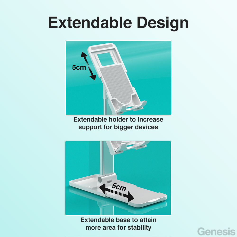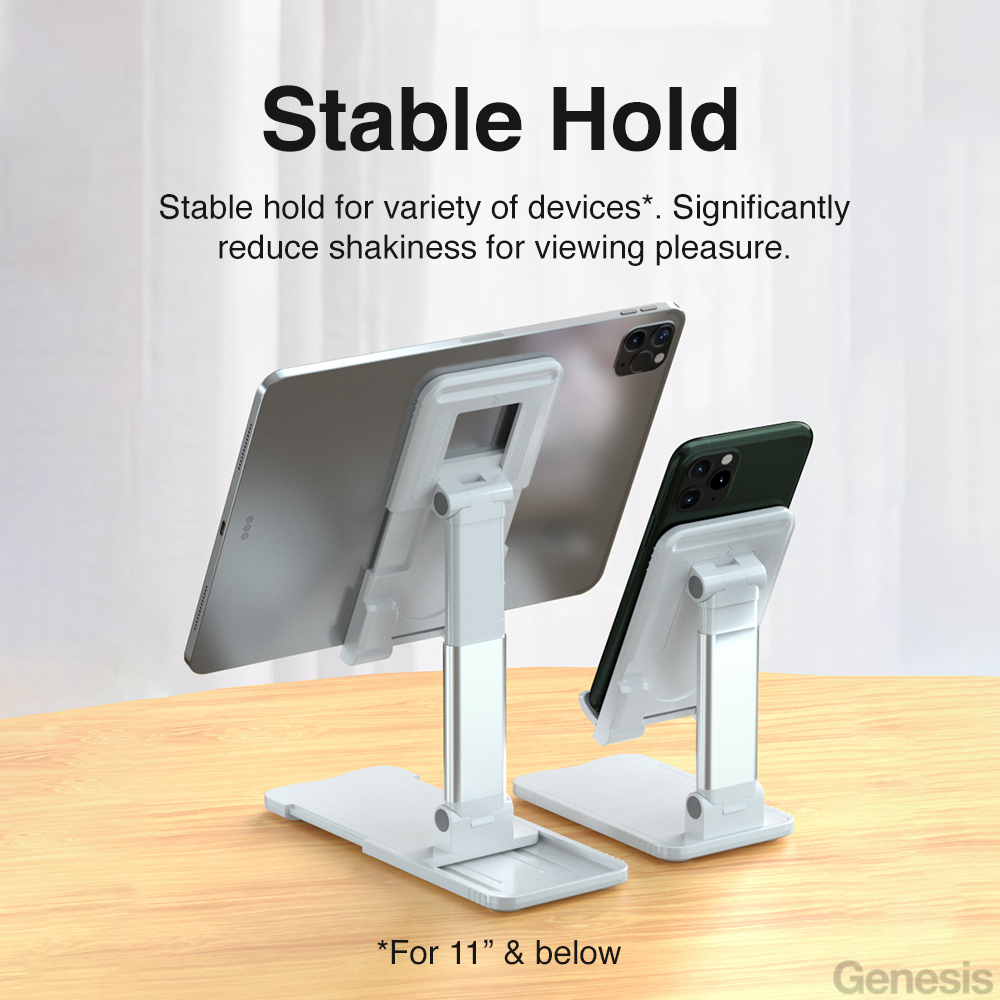 Genesis Phone Stand Holder w Foldable & Adjustable, Portable for Universal Mobile Handphone Tablet