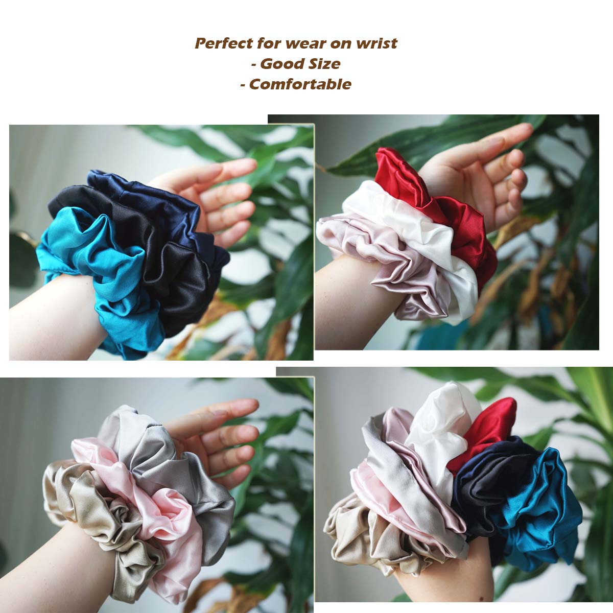 [SG ✨ Large]100% Authentic Mulberry Silk Scrunchies - 19 Momme Hair Ties Hair Ropes Hair Bands Premium Elastics Ponytail Holders for Women Girls Hair Accessories, No Hurt to Your Hair, Dress Up