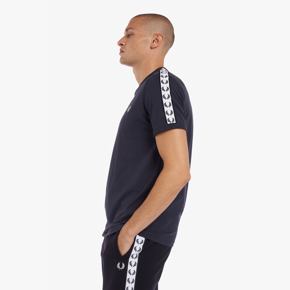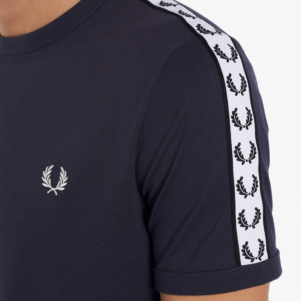 Defined by its contrast rib neck and cuff, our ringer T-shirt takes its cue from ‘90s sportswear. Designed with its original Laurel Wreath track tape at the sleeve. Cotton jersey / Contrast rib neck and cuff / Laurel Wreath track tape at the arm / We revive some of Fred Perry's most iconic sportswear styles from the ‘70s and beyond. Based on our original designs, the white track tape on our ringer t-shirts references the cash-strapped time of the ‘70s, when branding was generic to all colours.