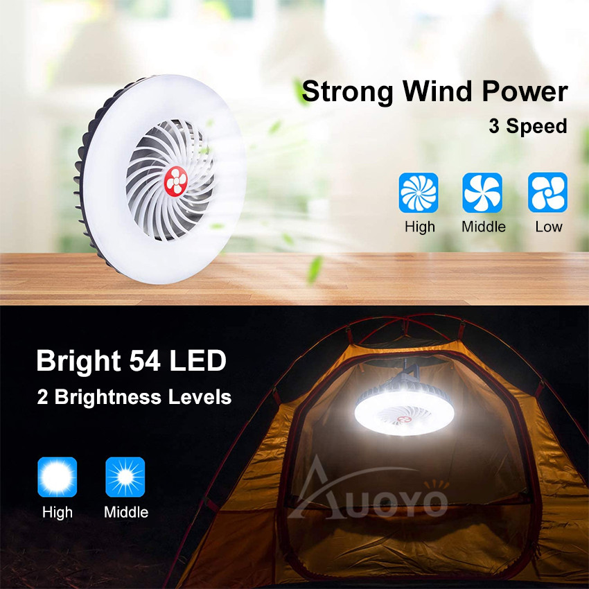 Auoyo Portable Camp Light Camping Lamp with Fan Outdoor Lighting Rechargeable Hanging Tent light Night light Magnetic Market Lamp Outdoor Portable Cooling Fan Light Lantern lamp
