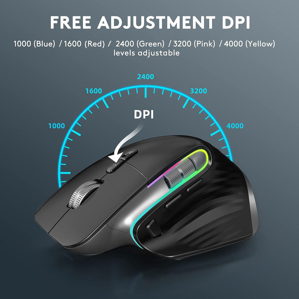VICTSING M10 Dual Mode BT1+BT2+2.4G Wireless Bluetooth Mouse Multi-Device Ergonomic Rechargeable RGB 4000 DPI Mice