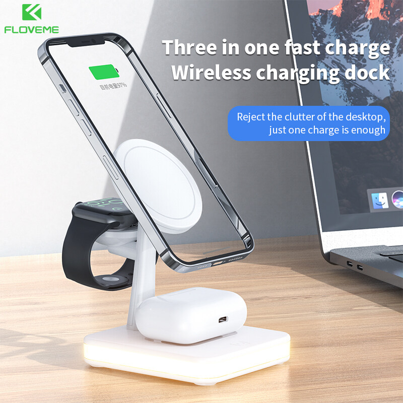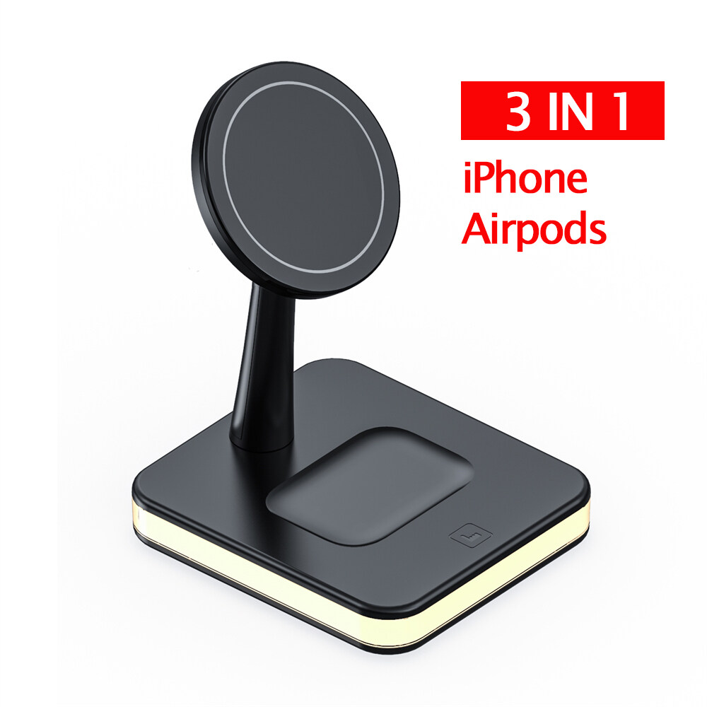 【3 in 1 Wireless Charger Stand】The Qi wireless charger adopts high charge efficiency.25W fast wireless charging for iPhone 12 iWatch Airpods Mobile Phone Charging Stand. Wireless charging can charge mobile phones and smart watches at the same time.