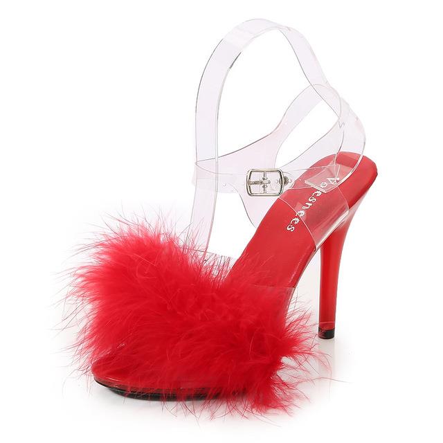Furry Super High Heel Sandals Women 11CM Nightclub Sandals Female Transparent Sexy Shoes Womens Summer Shoes Plus Size 34 43