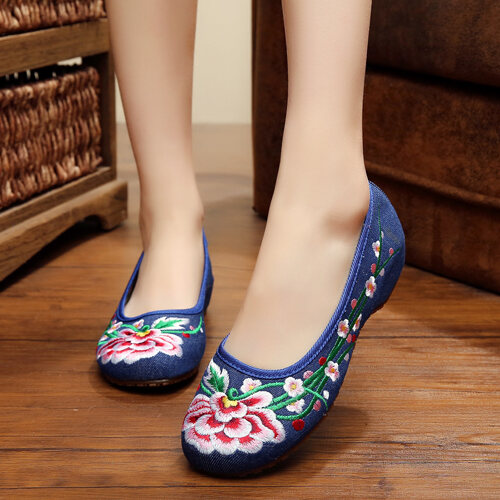 high heel embroidered shoes old Beijing women's cloth shoes ethnic style dance shoes Hanfu cheongsam beef tendon platform canvas casual shoes