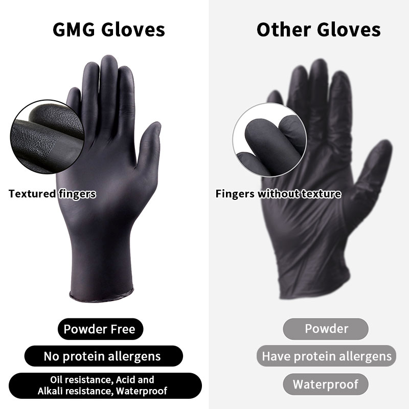 GMG 4.5g black disposable nitrile gloves good grip excellent protection Non-slip Safety Work Gloves Kitchen Garden Mechanics Gloves comfortable gloves