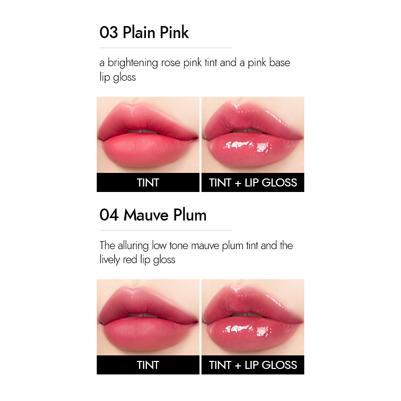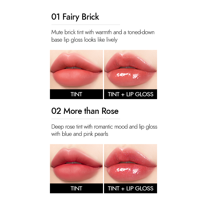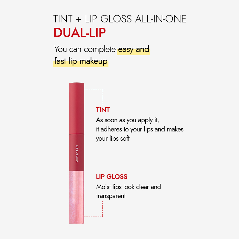 MERYTHOD Reel-Tattoo Dual Lip Glow Tint Gloss, Lip Tint and Lip Gloss Together