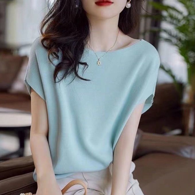 EDQRDQ Boat Neck Batwing Sleeves Knitted Ice silk T-shirt Sweaters and Pullovers Tops for Women