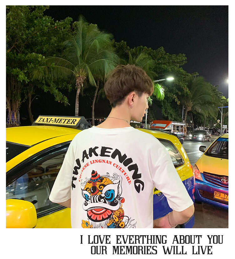 t shirt Men Large Size Korean Style Cartoon Print Oversize Casual Fashion Tops