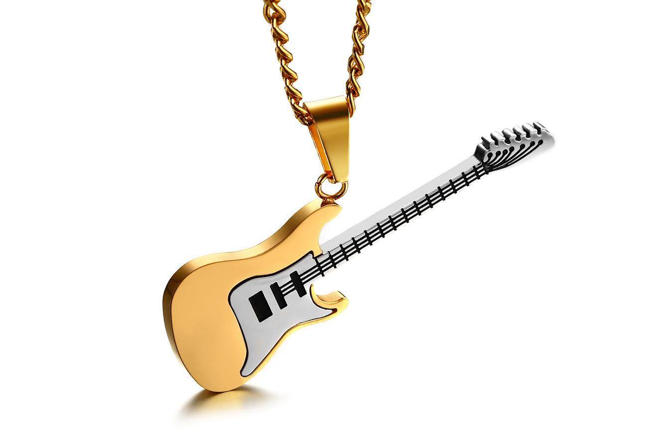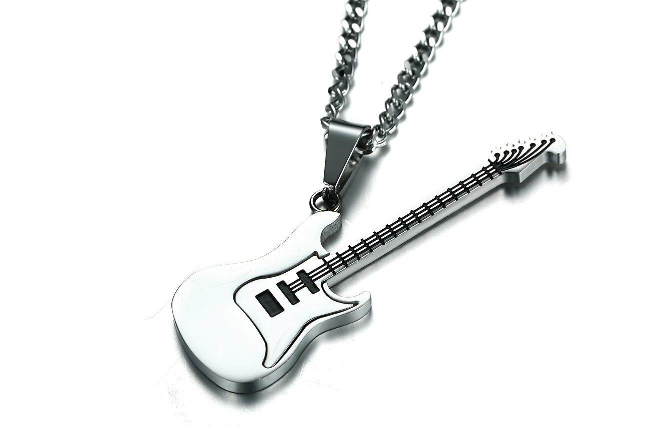 Kemstone Rock Stainless Steel Music Lover Gift Guitar Pendant & Necklace for Men