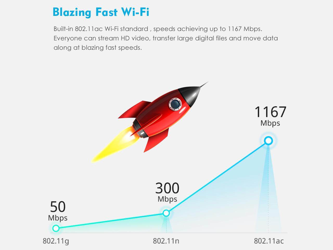 Built-in 802.11ac Wi-Fi standard , WN579X3 offers total data transfer speeds achieving up to 1167 Mbps. Everyone can stream HD video, transfer large digital files and move data along at blazing fast speed.