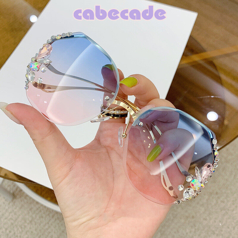 cabecade High Quality Sunglasses New 2022 Fashion Rhinestone Sunglasses Women's Trendy Anti-UV Sunglasses Slim Sunglasses Korean Version