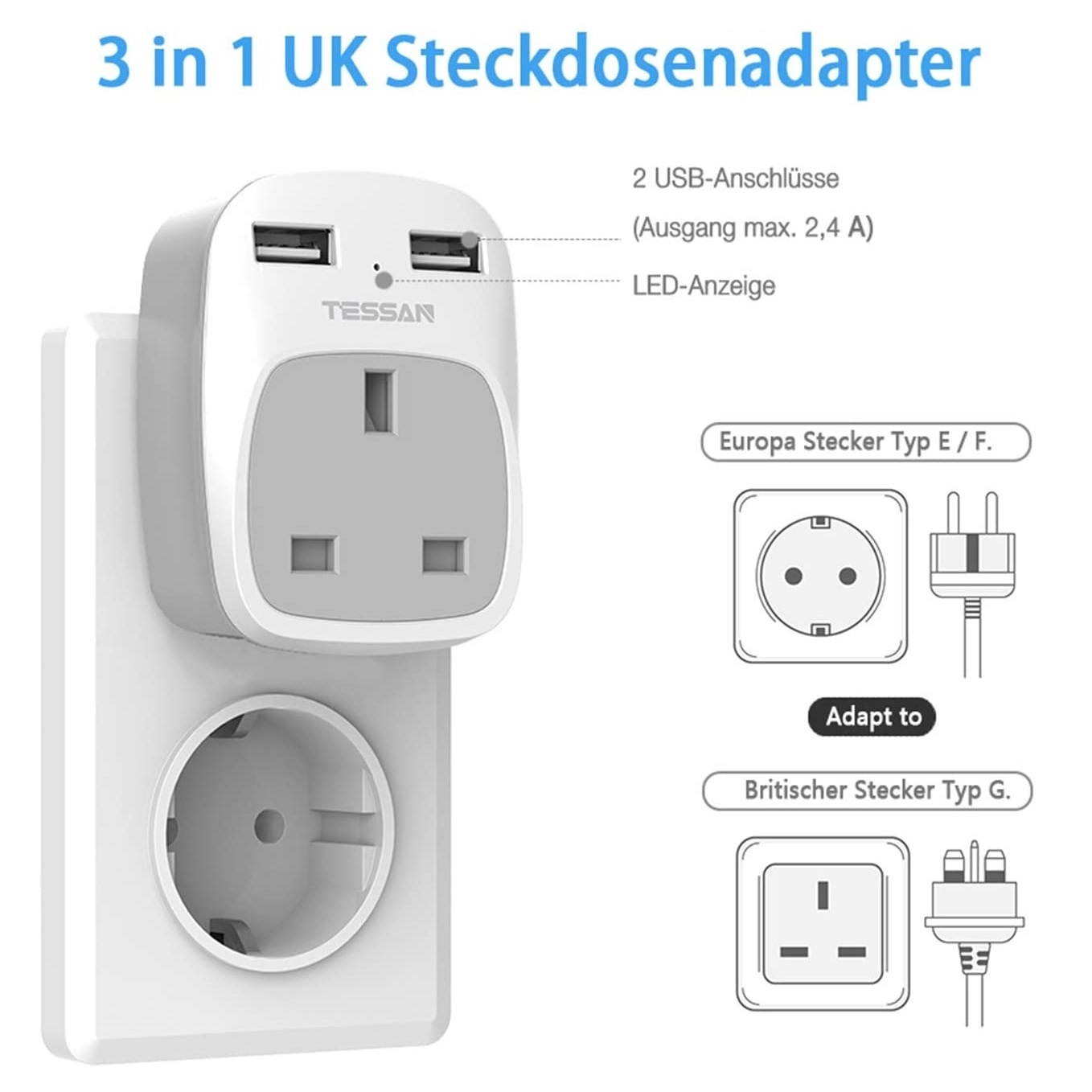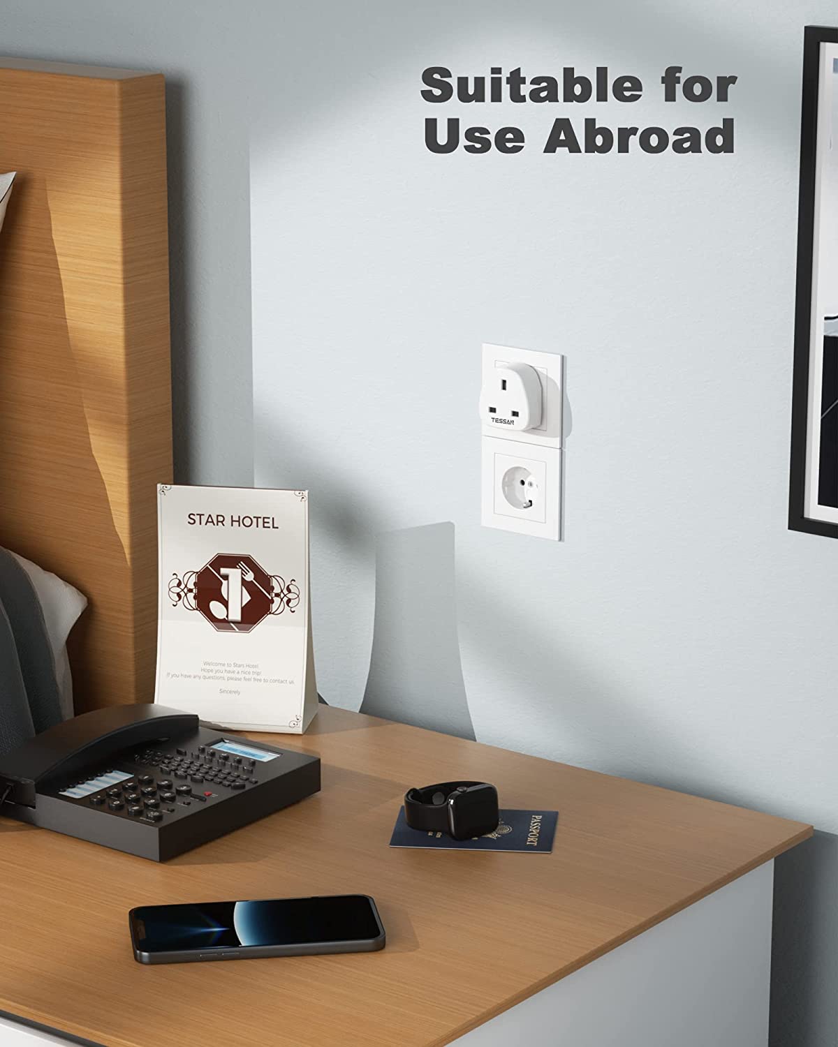 • UK to European Plug Adapter: TSEEAN European plug adapter can extend a standard UK type G plug to EU type E/F outlet, idealing for charging electrical products such as mobile phone, tablet, camera etc when you are traveling in Europe