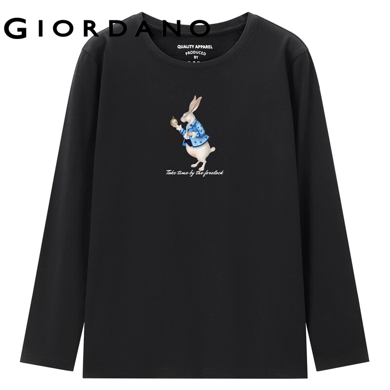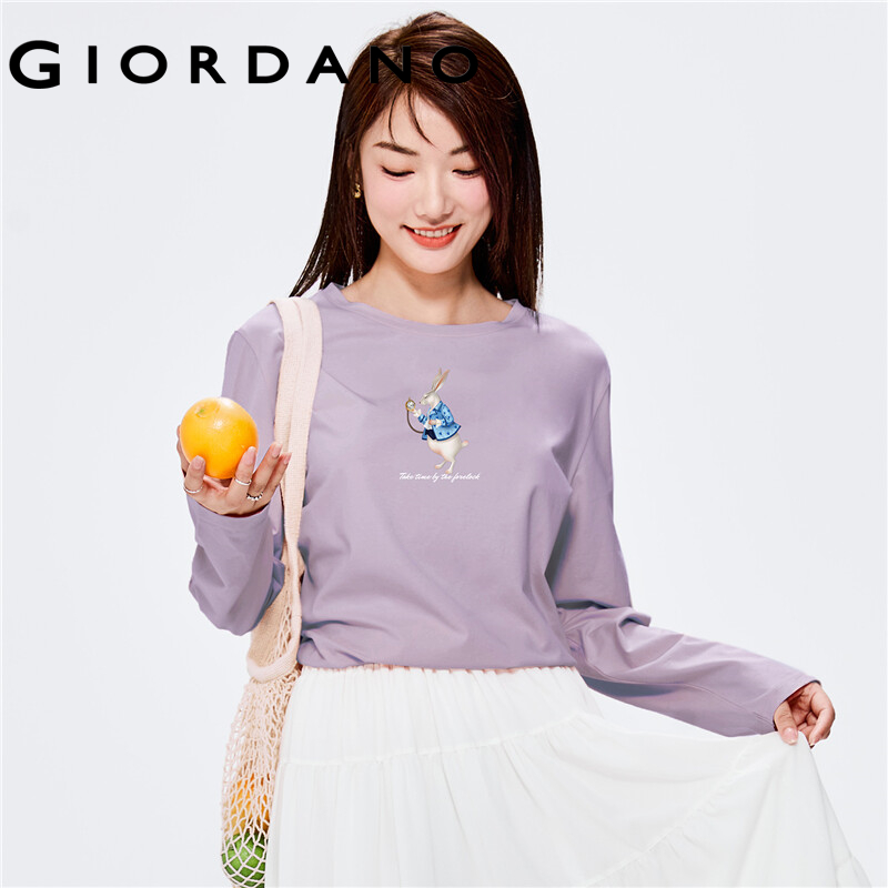 GIORDANO Women Huaxiansheng Series T-Shirts Print Pattern 100% Cotton Casual T-Shirts Long Sleeve Basic Spring Fall Tee 99392103