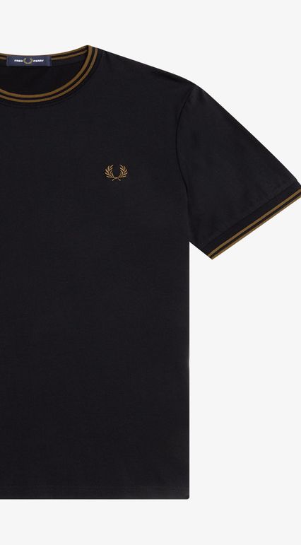 Fred Perry M1588 Twin Tipped T-Shirt (Black / Shaded Stone)